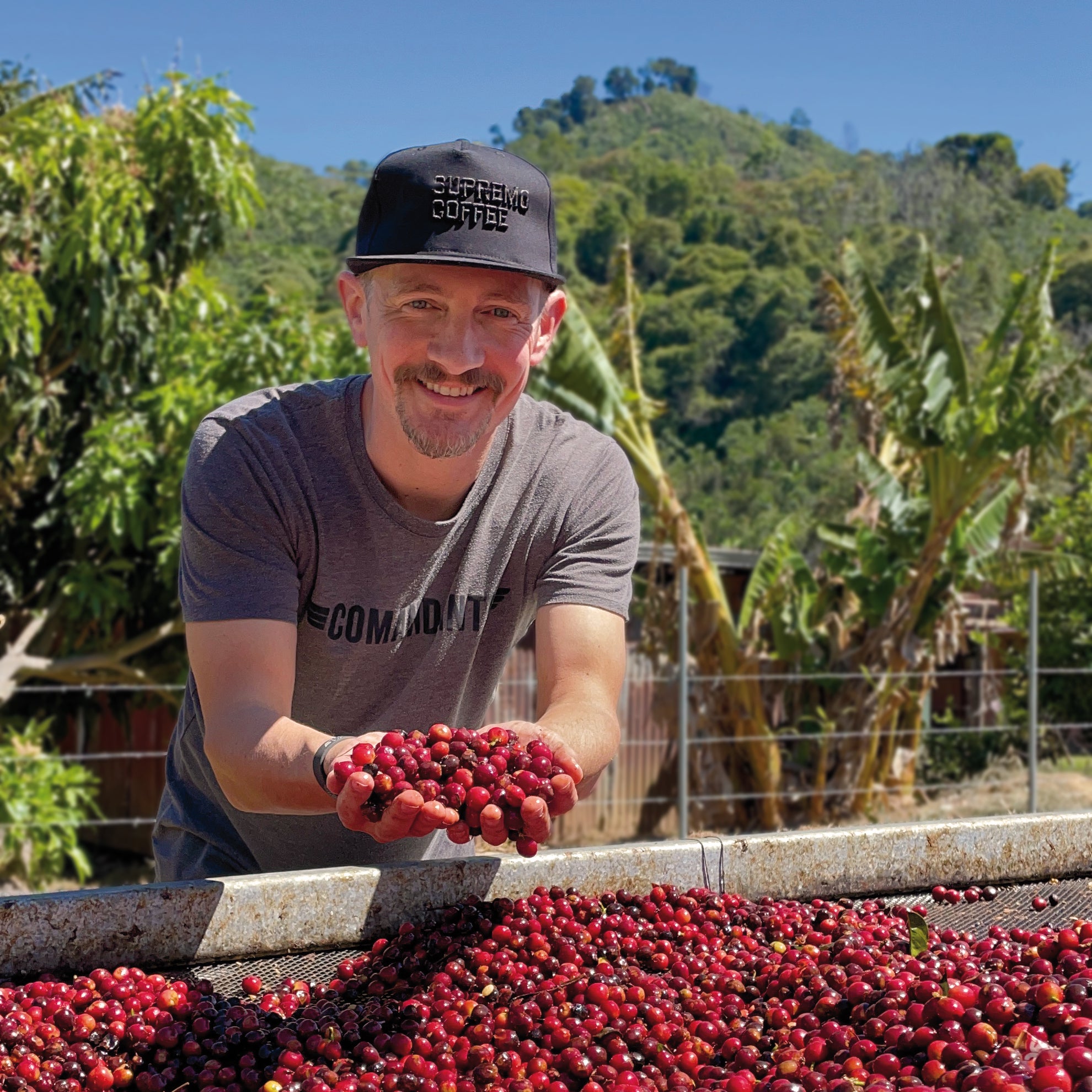Beim trockenen (natural) Prozess wird nach dem Ernten die Schale und Fruchtfleisch an der Kirsche belassen. Über mehrere Tage wird der Kaffee in der Frucht getrocknet. Hierbei wird streng darauf geachtet, dass der Kaffee von allen Seiten gut Luft bekommt, damit er gleichmäßig reifen kann, weshalb er auf gut belüfteten Trockenbetten verteilt wird. Schließlich werden Fruchtfleisch und Parchment entfernt, bevor der Kaffee sortiert und sicher verschickt werden kann, ehe er geröstet wird.