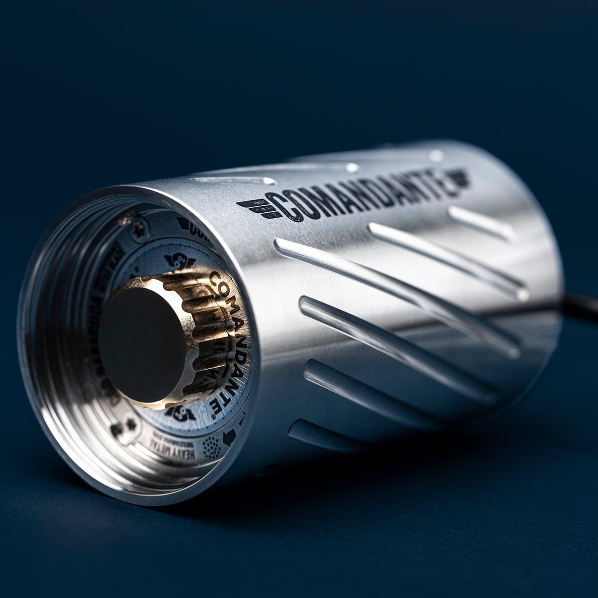 Diese 'Unibody'-Bauart aus Stahl macht die Produktion zwar besonders herausfordernd, aber COMANDANTE® definitiv den Aufwand wert, um das perfekte Mahlgehäuse zu schaffen. COMANDANTE® hat die Grenzen herkömmlicher Herstellungstechniken und Ideen von Qualität hinter sich gelassen zugunsten von Verfahren, die bisher allein für Hochleistungsmotoren reserviert waren. Das Resultat ist ein kraftvolles, markantes Design, das die Funktion synergetisch komplimentiert. Eine mächtige Mühle von einem Kilogramm, die einfach nur Freude macht.